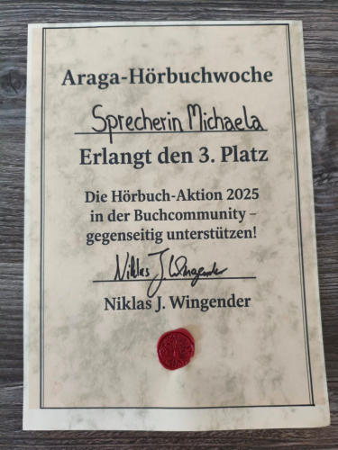 Die Araga-Hörbuchwoche 2025Die Araga-Hörbuchwoche 2025 hat fantastische Hörerlebnisse hervorgebracht! Rund 30 professionelle Sprecher:innen haben mit viel Leidenschaft und Kreativität Hörproben aus der Welt von Araga eingesprochen.1. Platz Sandra Schüen 2. Platz Thomas Jochen Horst 3. Platz Sprecherin Michaela